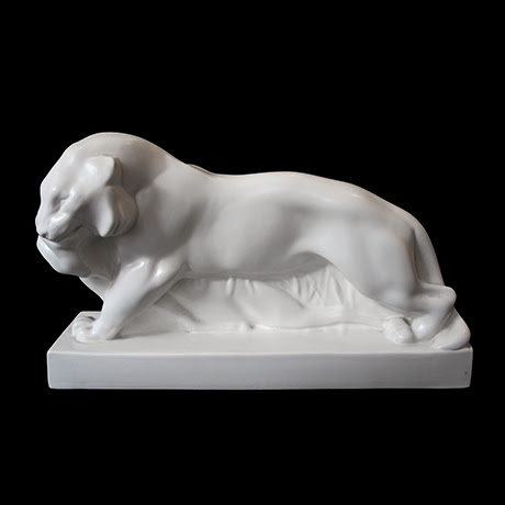 Designed by John Skeaping for Wedgwood this Art Deco styled group ‘Tiger and Buck’ is fired in a matt white ‘moonstone’ glaze.